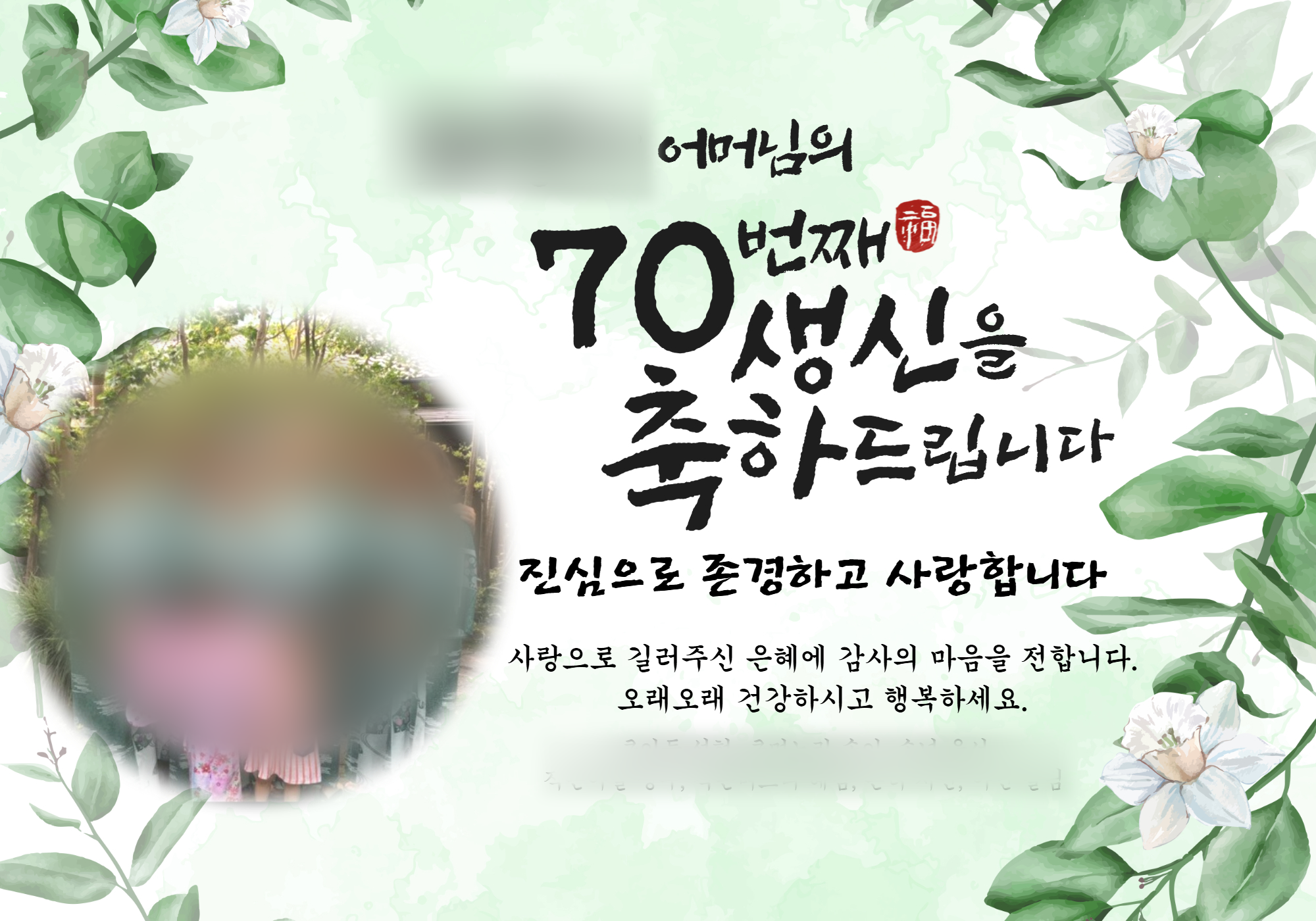 - 사랑하는 어머니(아버지) 칠순을 축하드립니다